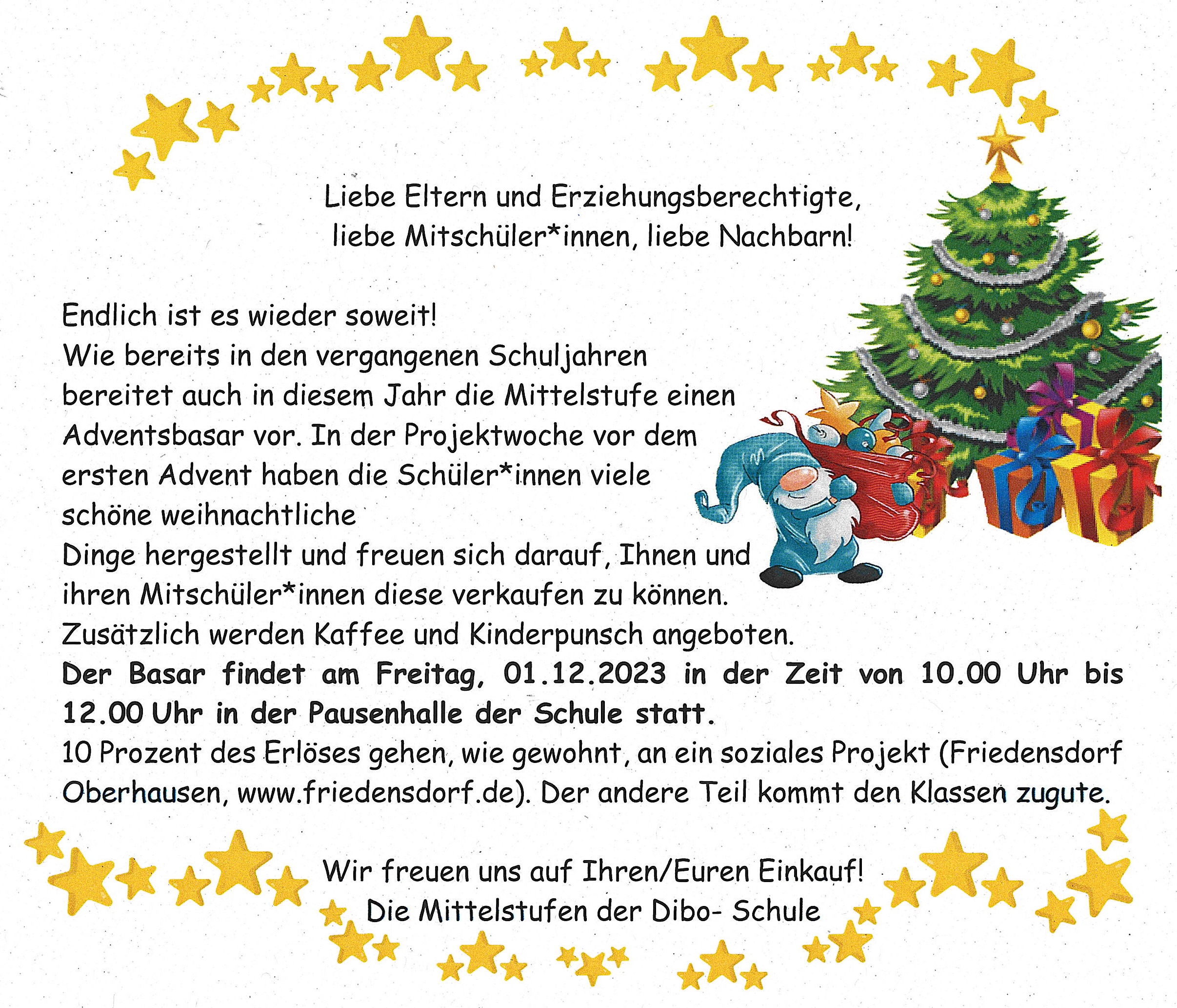 Einladung Adventsbasar in der LVR-Dietrich-Bonhoeffer-Schule