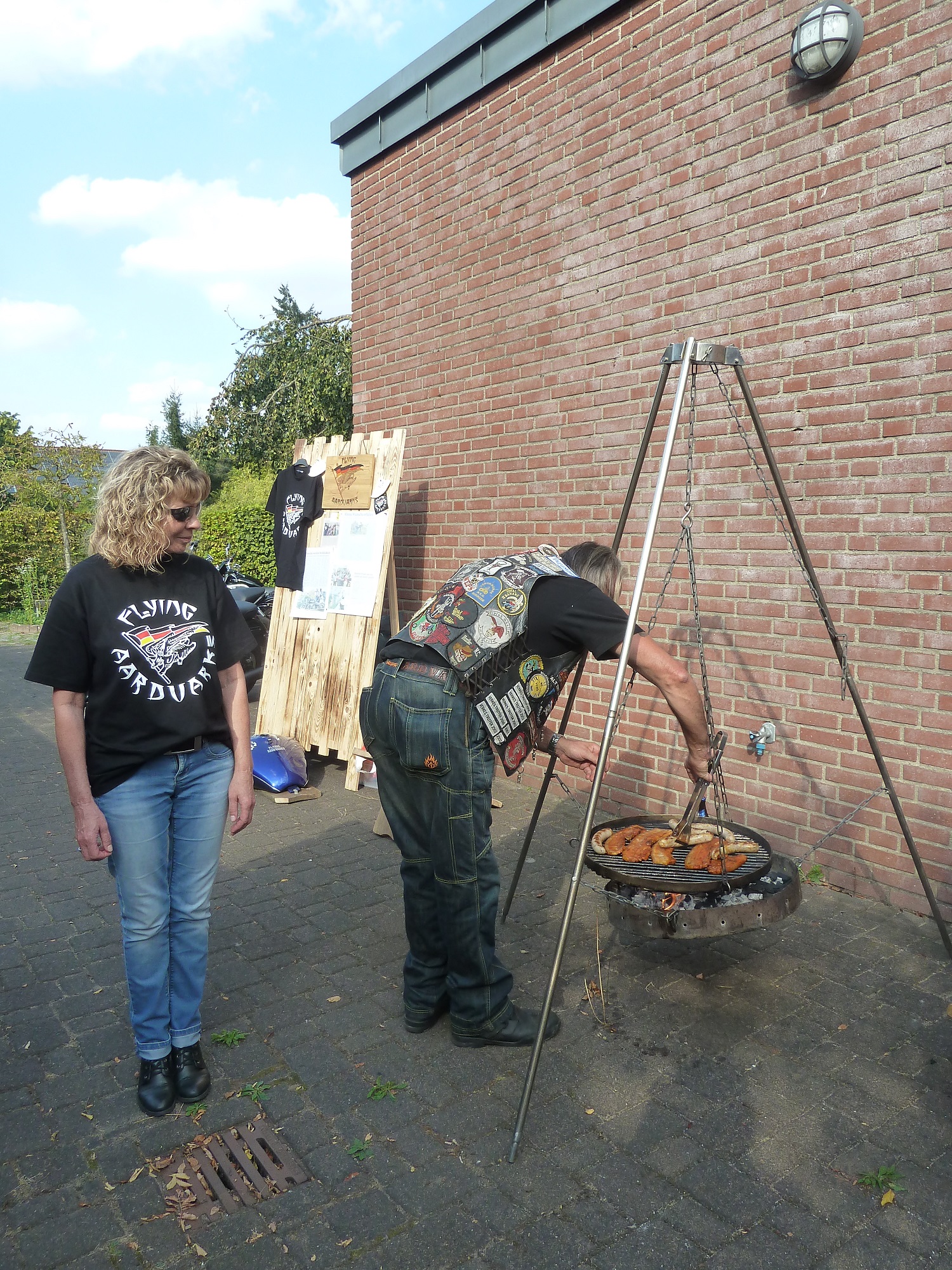 Mit unserem Doppeldeckerbus und einem hungrigen Magen wieder zur Schule zurückgekehrt, erwartete uns bereits der Hülmer Motorradclub Flying Aardvarks Germany. Ihre Grills waren gut angeheizt und so hatte bald jeder ein leckeres Stück Fleisch oder eine Wurst und Salat auf seinem Teller liegen.